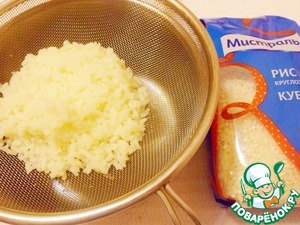 Откинуть рис на дуршлаг, дать стечь жидкости и остудить до теплого состояния.