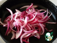 Луковицу нарезать полукольцами и обжарить на растительном масле до приобретения золотистого цвета если лук красный – до карамелизации).